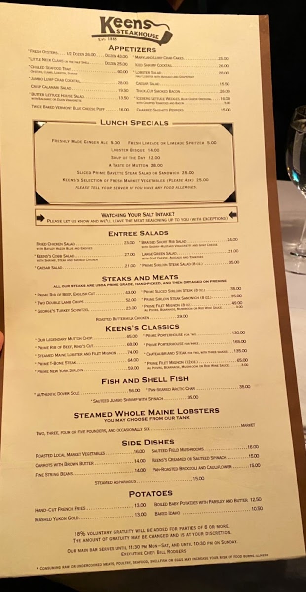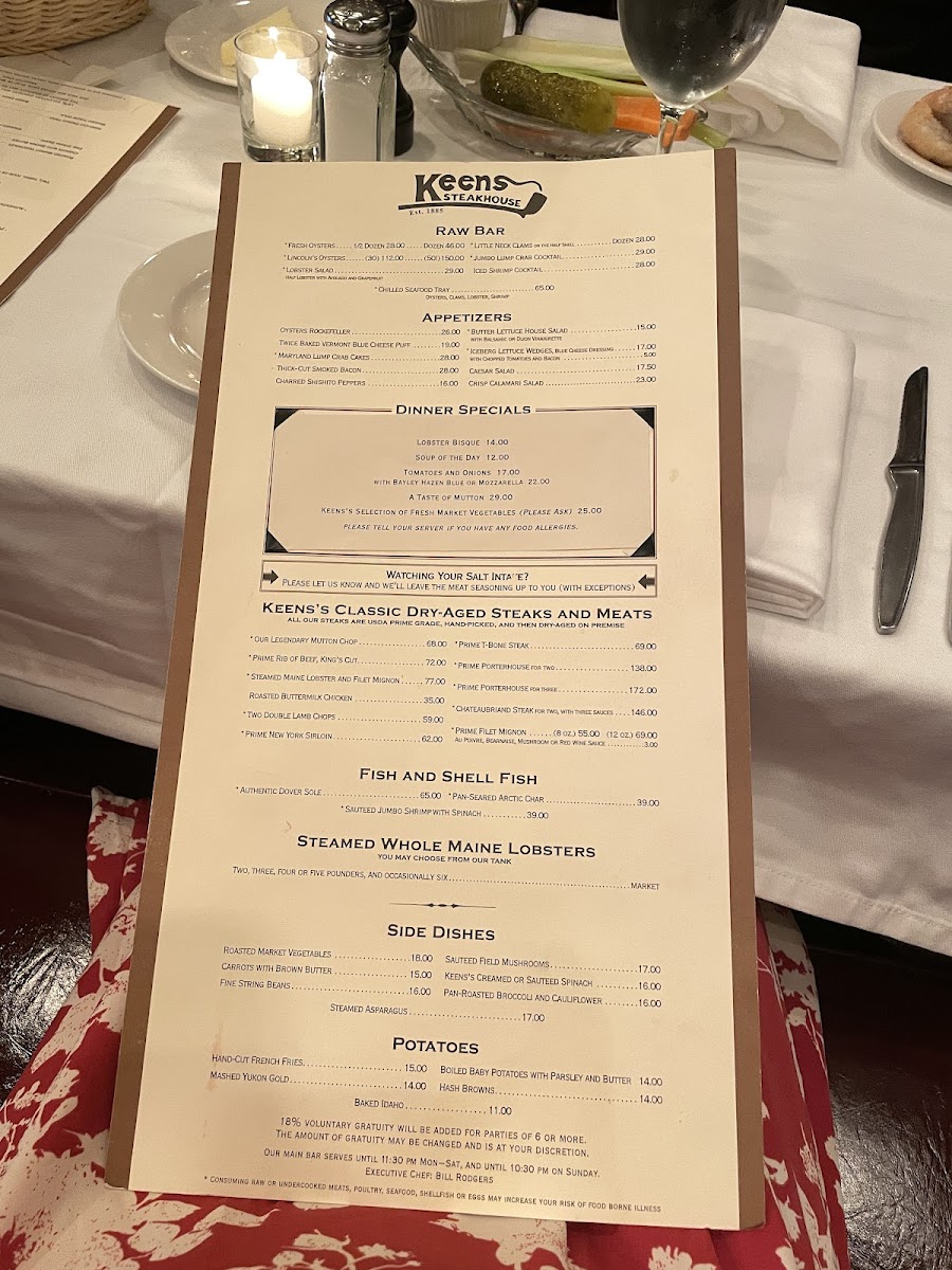 Welcome to Keens Steakhouse, a true New York City gem located at 72 W 36th St. Established in 1885, this iconic steakhouse is celebrated not just for its rich history but also for its exceptional culinary offerings. The menu features standout items like the legendary Mutton Chop, praised for its tender and flavorful cut, as well as the mouthwatering Bavette Steak Sandwich served with crispy fries.